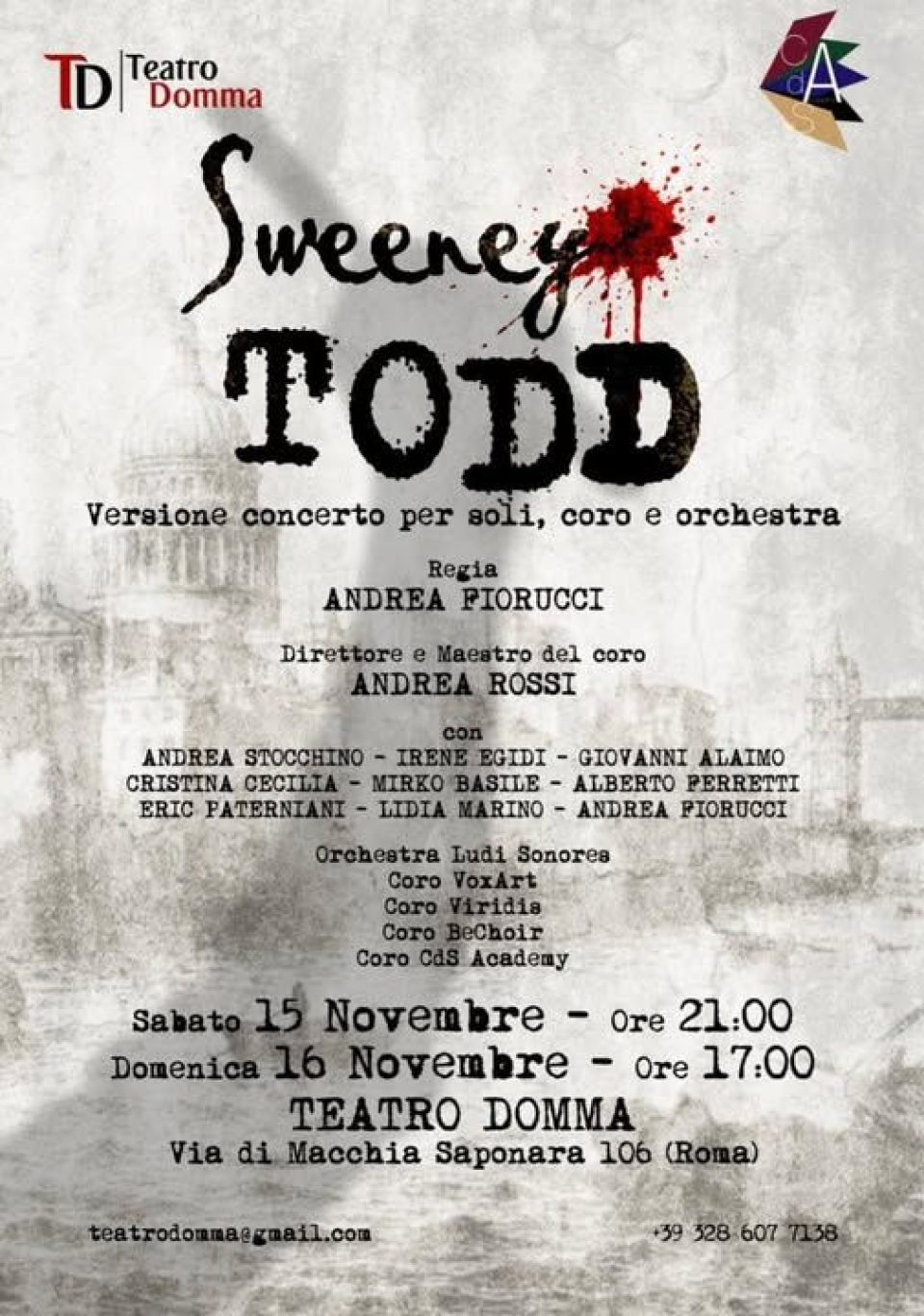 Acilia (Rm) – Weekend di grande teatro al Teatro Domma con La leggenda di Sweeney Todd, il celebre musical che racconta la fosca storia di Benjamin Barker, barbiere di Londra assetato di vendetta, e della sua complice Mrs. Lovett, che trasforma i loro crimini in un macabro commercio di pasticci di carne.