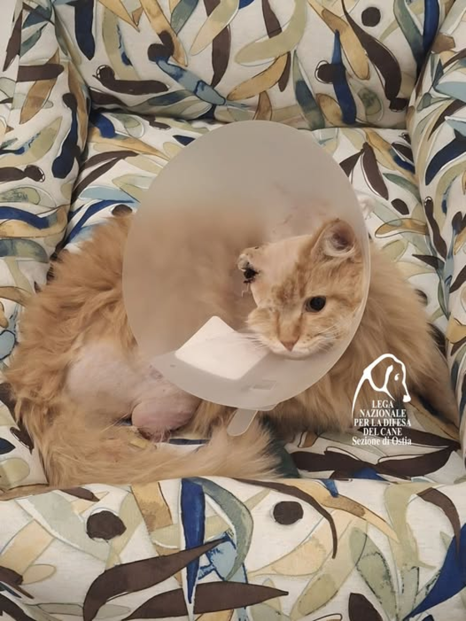 Le sue condizioni restano delicate. I veterinari stanno valutando un secondo intervento all’orecchio, completamente bruciato: si sospetta che qualcuno abbia utilizzato un petardo o gli abbia dato fuoco.