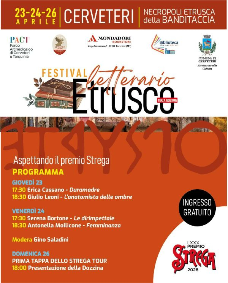 L’assessore alla Cultura Francesca Cennerilli sottolinea il valore sociale dell’iniziativa: “Il Festival Letterario Etrusco e il Premio Strega sono appuntamenti centrali della nostra primavera culturale. In una cornice unica parleremo di rinascita e trasformazione”.