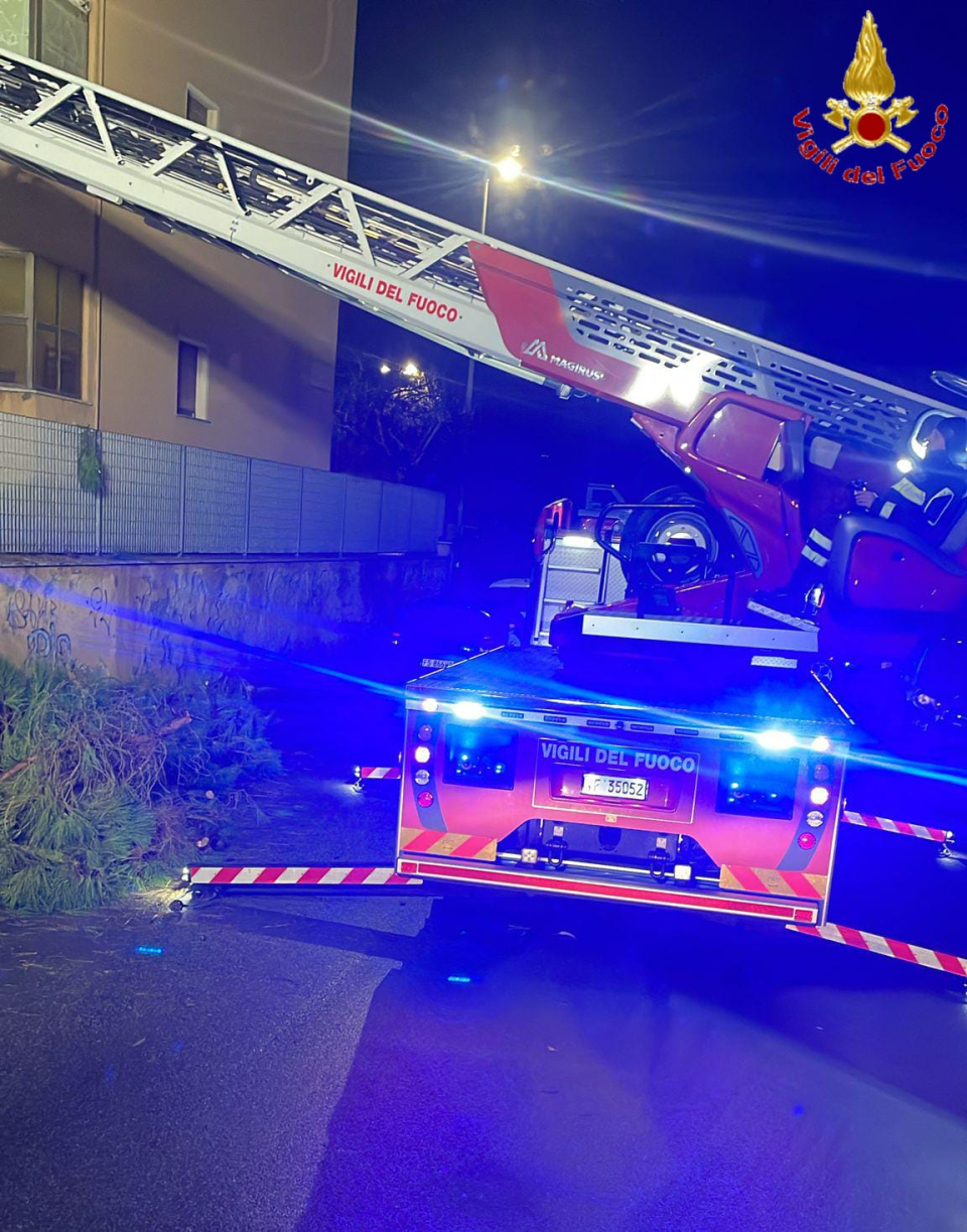 Paura nella notte in via Apollodoro dove due alberi di grandi dimensioni sono crollati sulla facciata di un edificio residenziale. I pompieri impegnati per oltre sette ore in un delicato intervento di messa in sicurezza. Nessun ferito, danni contenuti