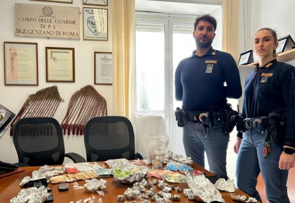 A Genzano di Roma, gli agenti hanno scoperto un laboratorio domestico gestito da due fratelli, all’interno del quale erano conservati oltre 200 grammi di droga tra hashish e cocaina, insieme a strumenti per il taglio e il confezionamento, più di 2.500 euro in contanti e appunti utilizzati per tenere una contabilità rudimentale ma significativa, segno di un’attività ben organizzata.