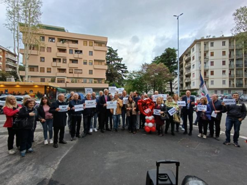 Eur, protesta contro la ciclabile di via dell’Aeronautica: flash mob di Fratelli d’Italia