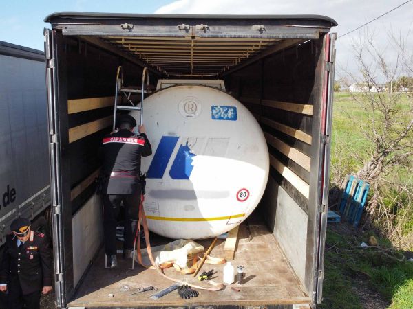Per eludere i controlli, la cisterna era stata occultata nel rimorchio telonato di un autoarticolato con targa polacca. Un espediente studiato per mimetizzare il carico e consentire il trasferimento del carburante rubato verso depositi clandestini individuati nella zona di Ponte Galeria, dove sarebbe poi iniziata la fase di “lavorazione” e smistamento.
