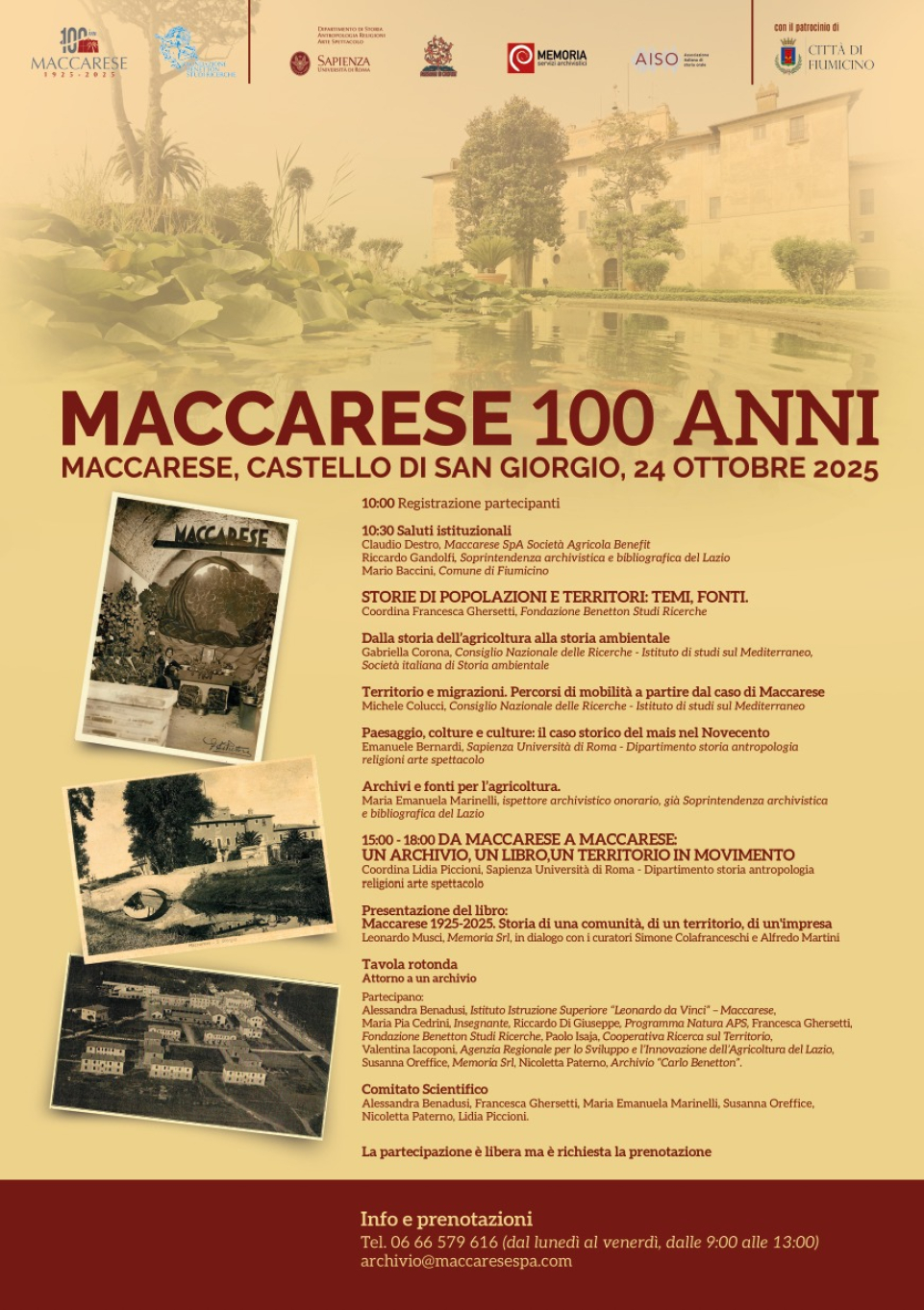 L’evento, intitolato “Maccarese 100 anni” e patrocinato dal Comune di Fiumicino, si terrà venerdì 24 ottobre dalle 9:30 alle 18:00 presso il suggestivo Castello di San Giorgio.