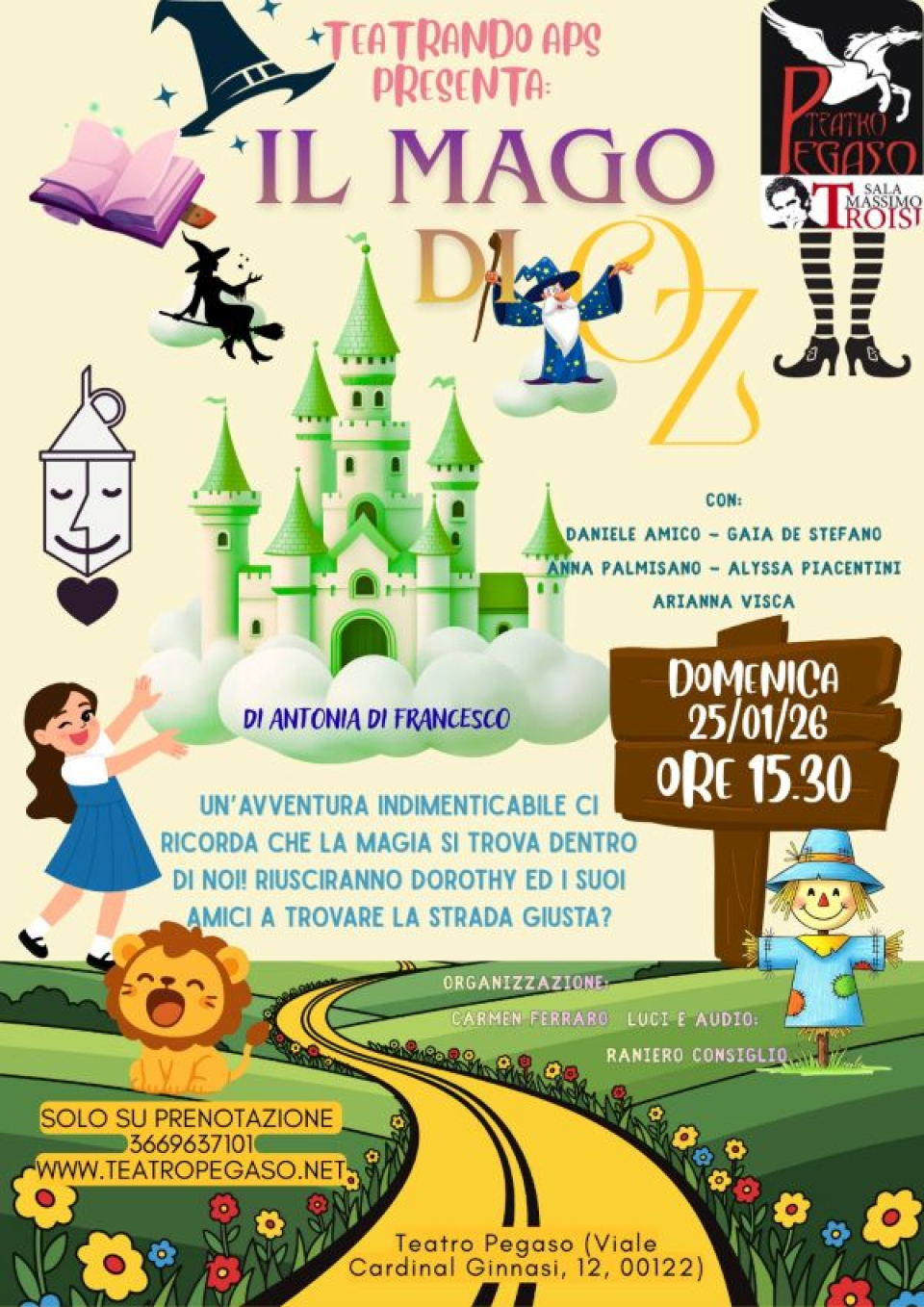 e coraggio. Domenica 25 gennaio - alle 15.30 - il Teatro Pegaso – Sala Massimo Troisi ospita Il Mago di Oz, spettacolo dedicato ai più piccoli e ispirato al celebre romanzo di L. Frank Baum.