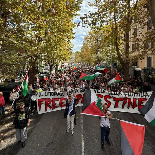 La manifestazione si è conclusa tra cori e applausi, con i partecipanti che hanno innalzato le bandiere palestinesi rivolte verso il mare. Un gesto simbolico, dal litorale romano verso un orizzonte di pace, a ricordare che anche dalle periferie può partire una voce di solidarietà e di umanità.