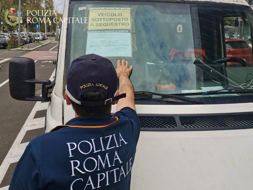 Denunce, sequestri e ulteriori indagini dei caschi bianchi. Un altro autocarro bloccato su via Nomentana