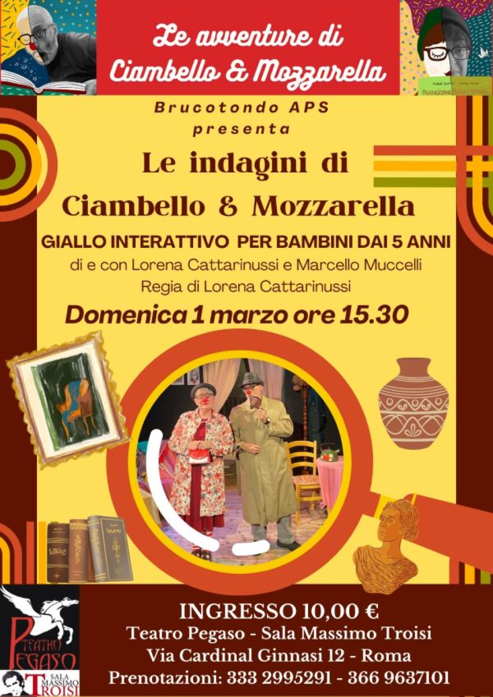 Il weekend “in giallo” non dimentica i più piccoli. Domenica pomeriggio spazio a Le indagini di Ciambello e Mozzarella Ddetective, uno spettacolo interattivo pensato per bambini dai 7 anni in su.