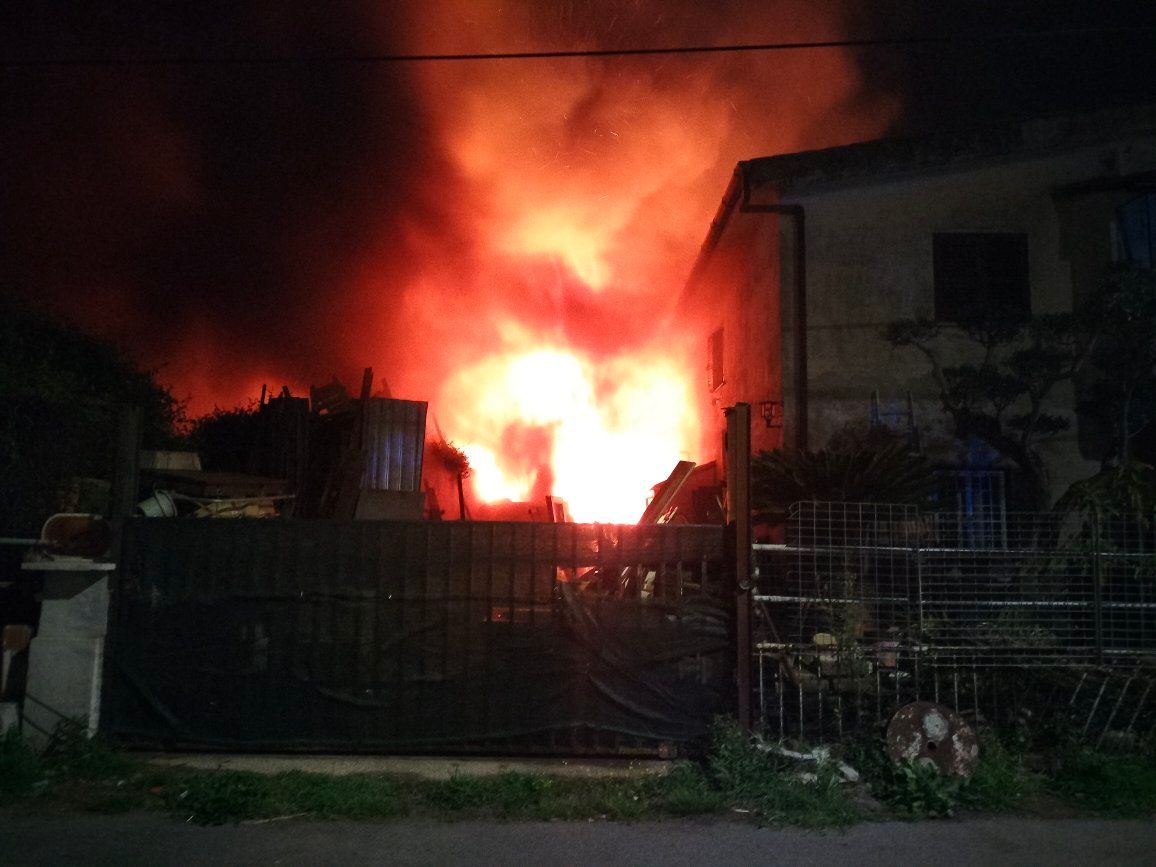 A dare l’allarme sono stati i residenti, svegliati da una densa colonna di fumo e da un bagliore intenso che ha illuminato la zona. In pochi minuti, il fuoco ha divorato un magazzino adibito a deposito di merci, probabilmente materiale di risulta, situato anche in prossimità di alcune abitazioni.
